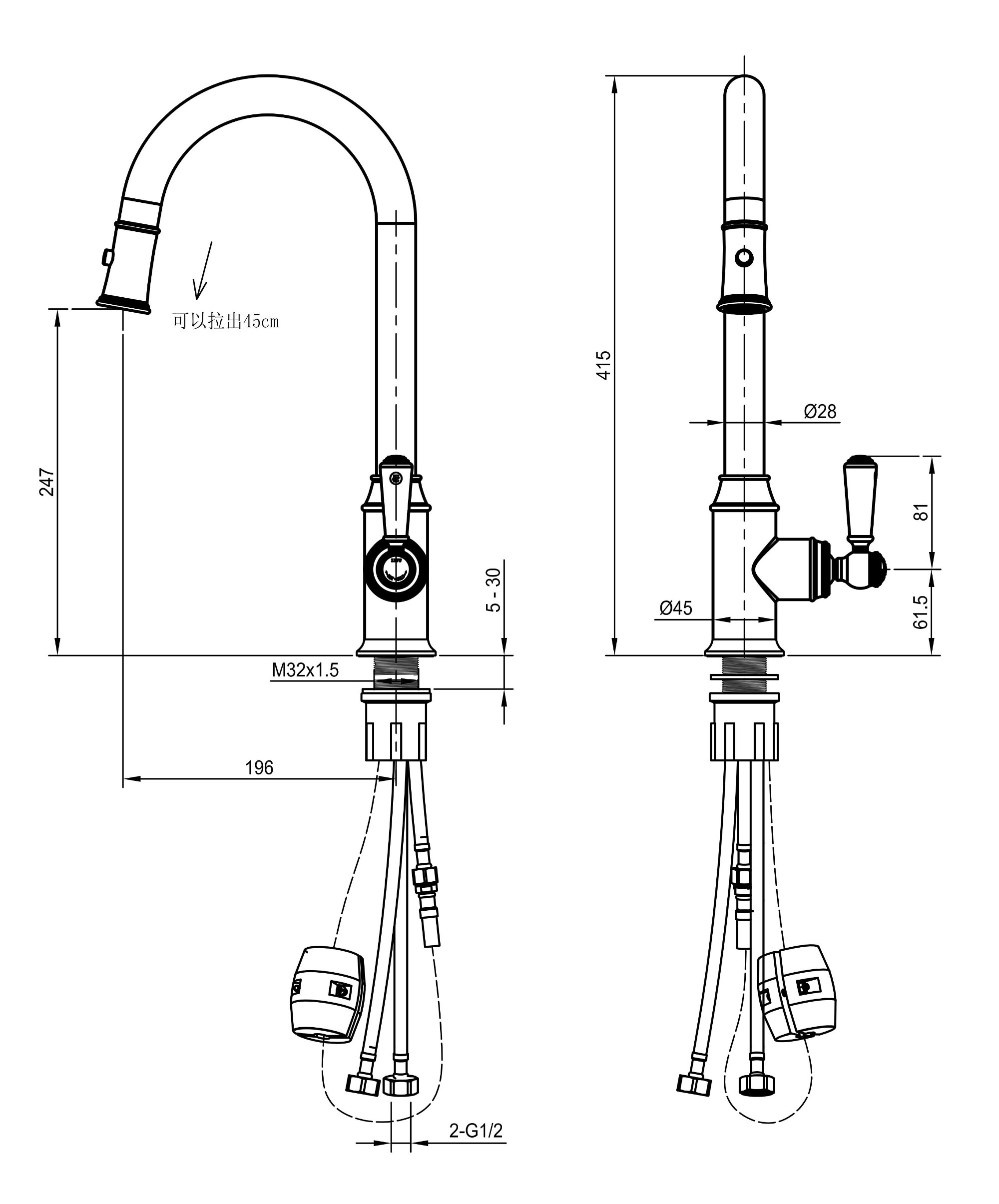 ● Dual-Function Sprayer Design: Switch seamlessly between stream spray and shower spray with a single button.